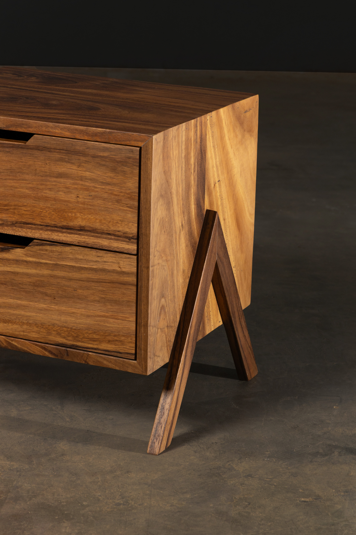 Hecho en madera sólida, suma funcionalidad y diseño refinado. Un complemento ideal para dormitorios de estilo contemporáneo.