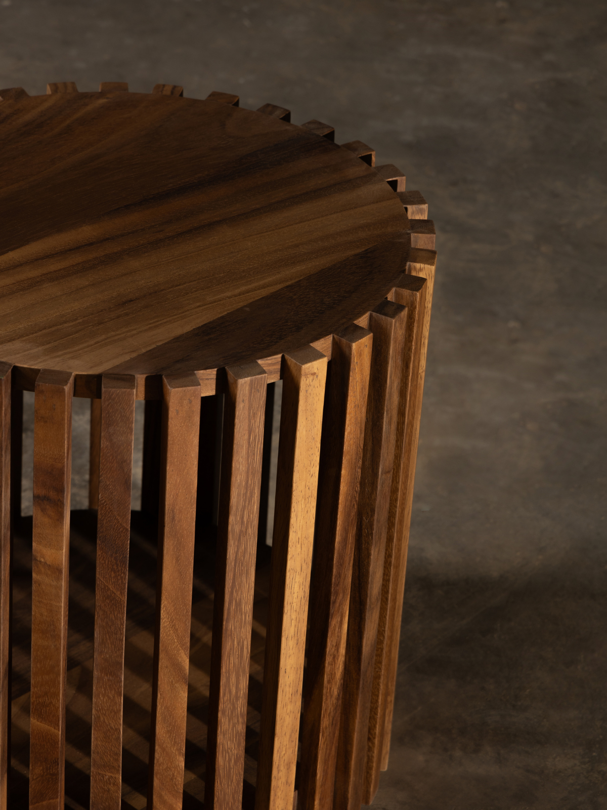 Hecha a mano en madera sólida. Un acento funcional para cualquier espacio que quiera destacar.