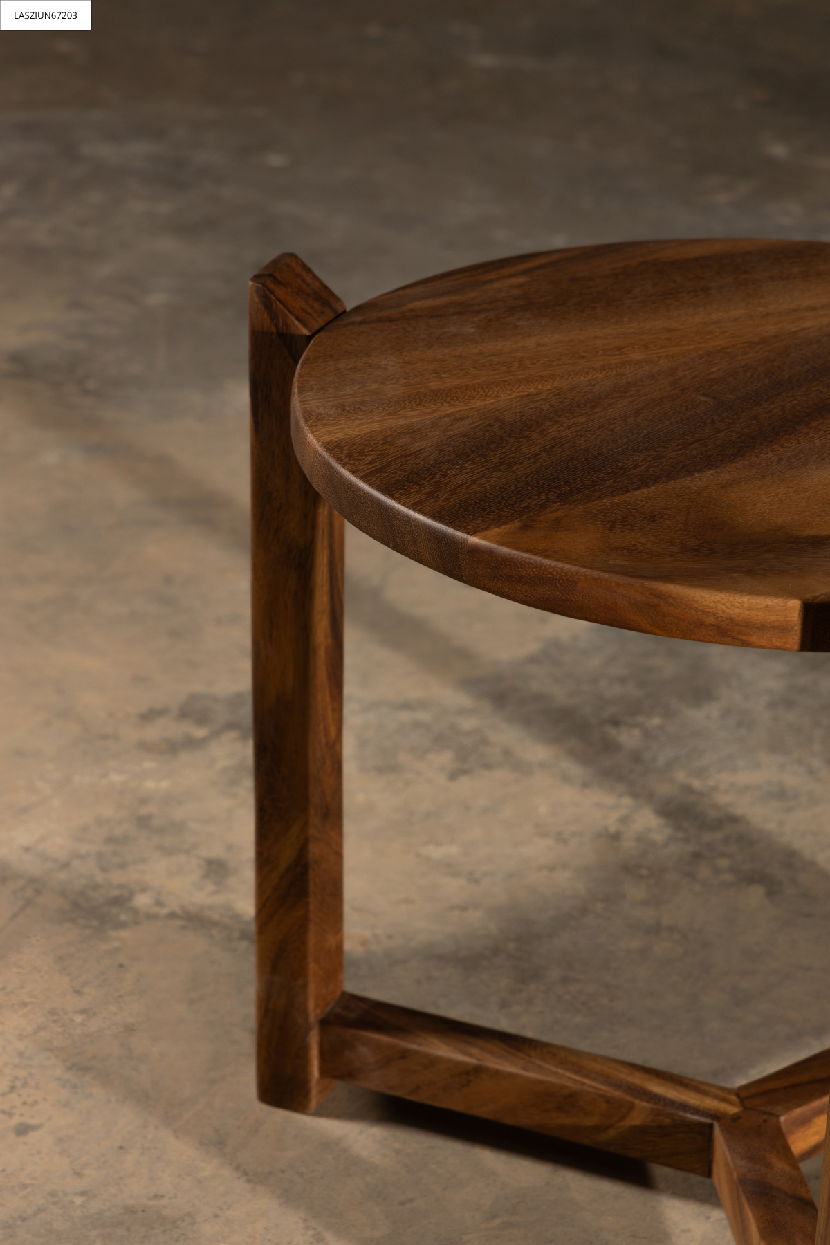 Fabricada a mano en madera sólida, su estructura robusta y elegancia minimalista resaltan la belleza natural de cada veta.