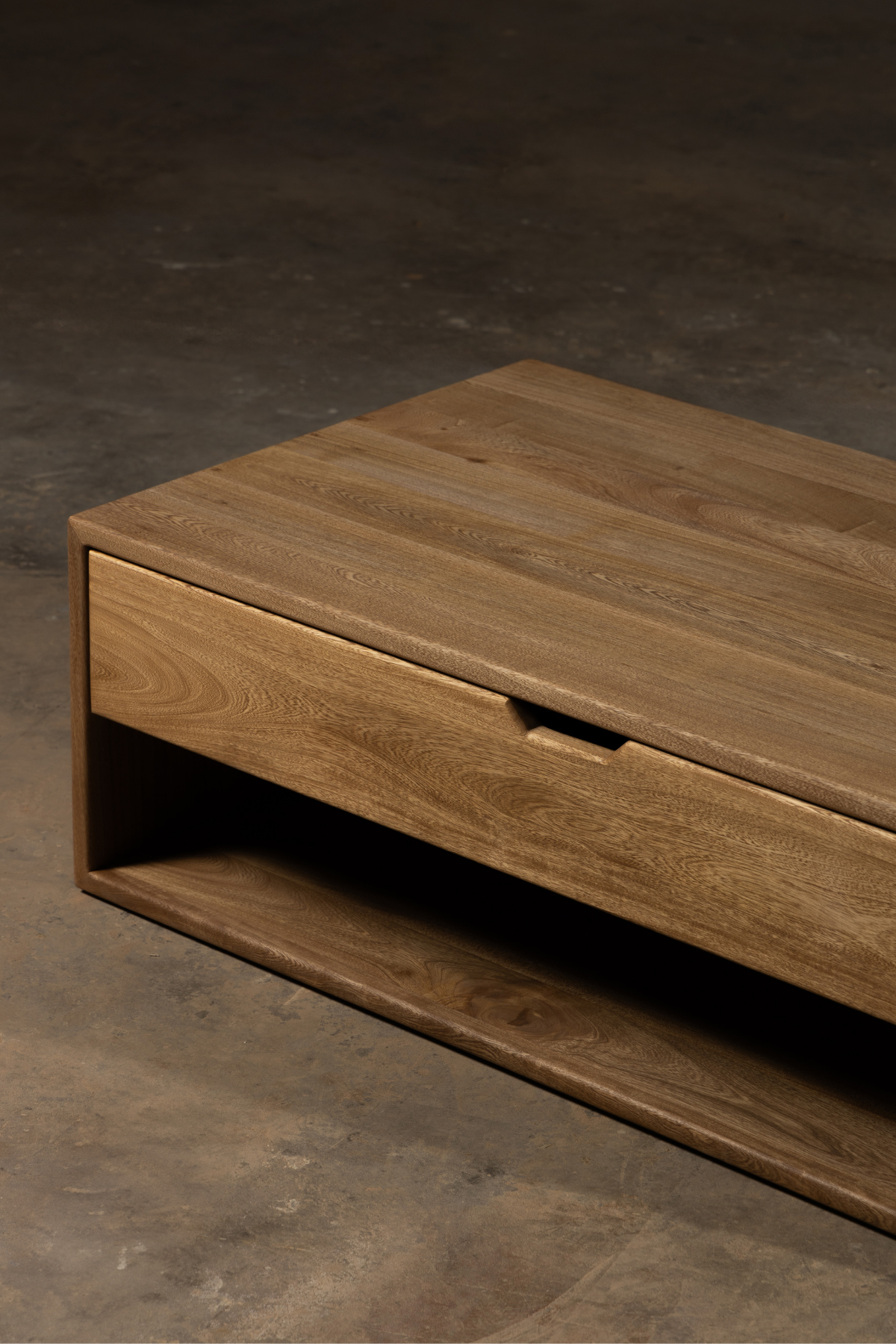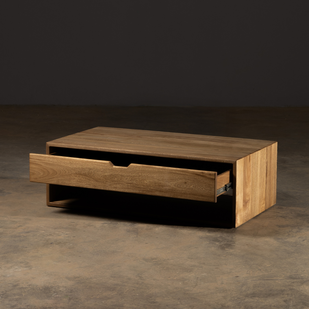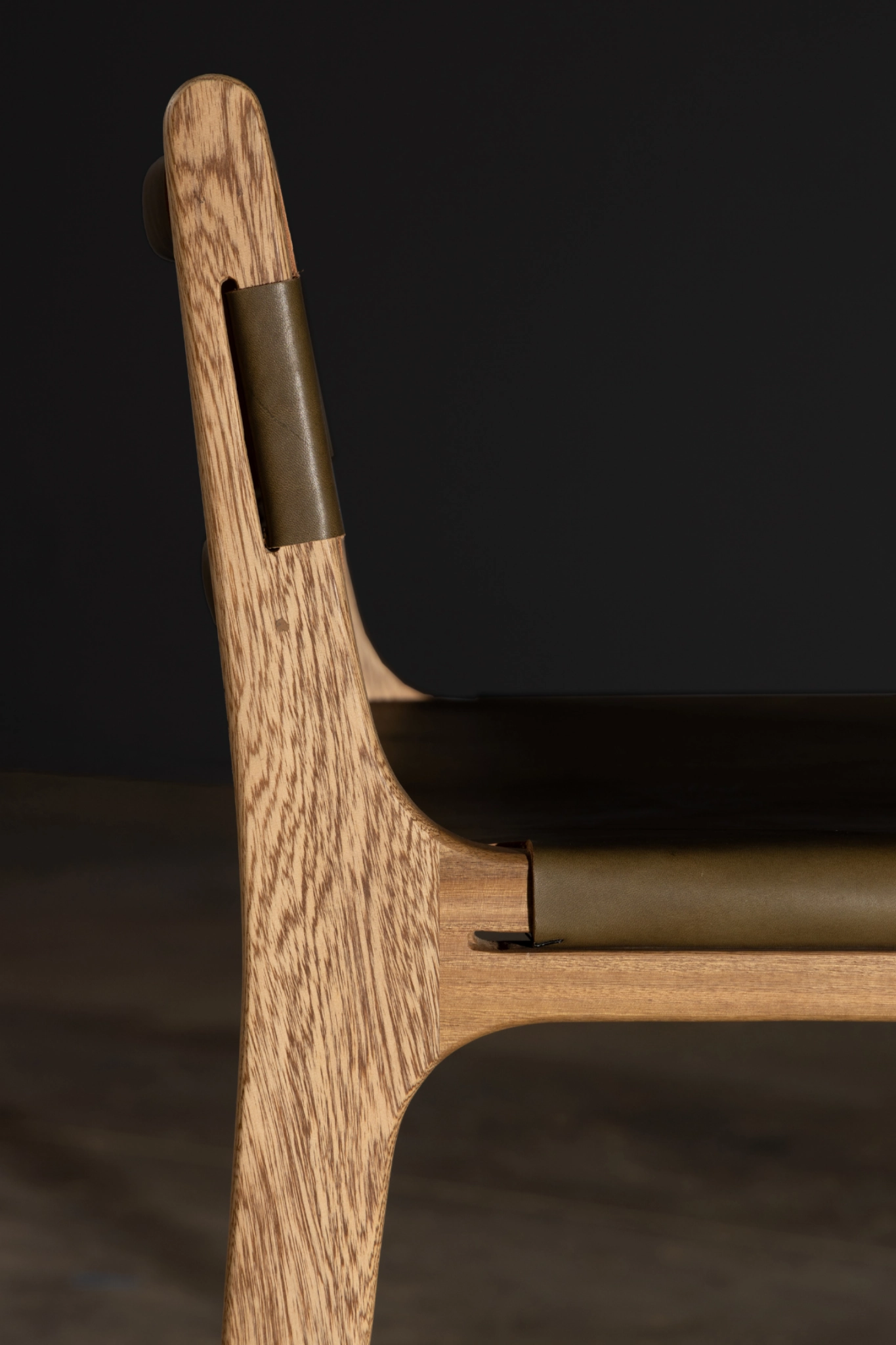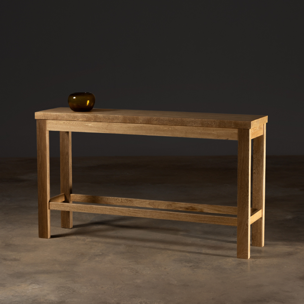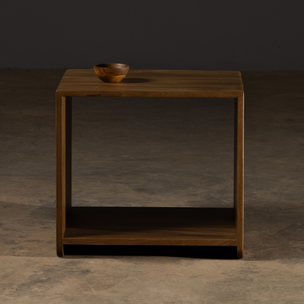 Fabricada a mano en madera sólida, su estructura robusta y elegancia minimalista resaltan la belleza natural de cada veta.