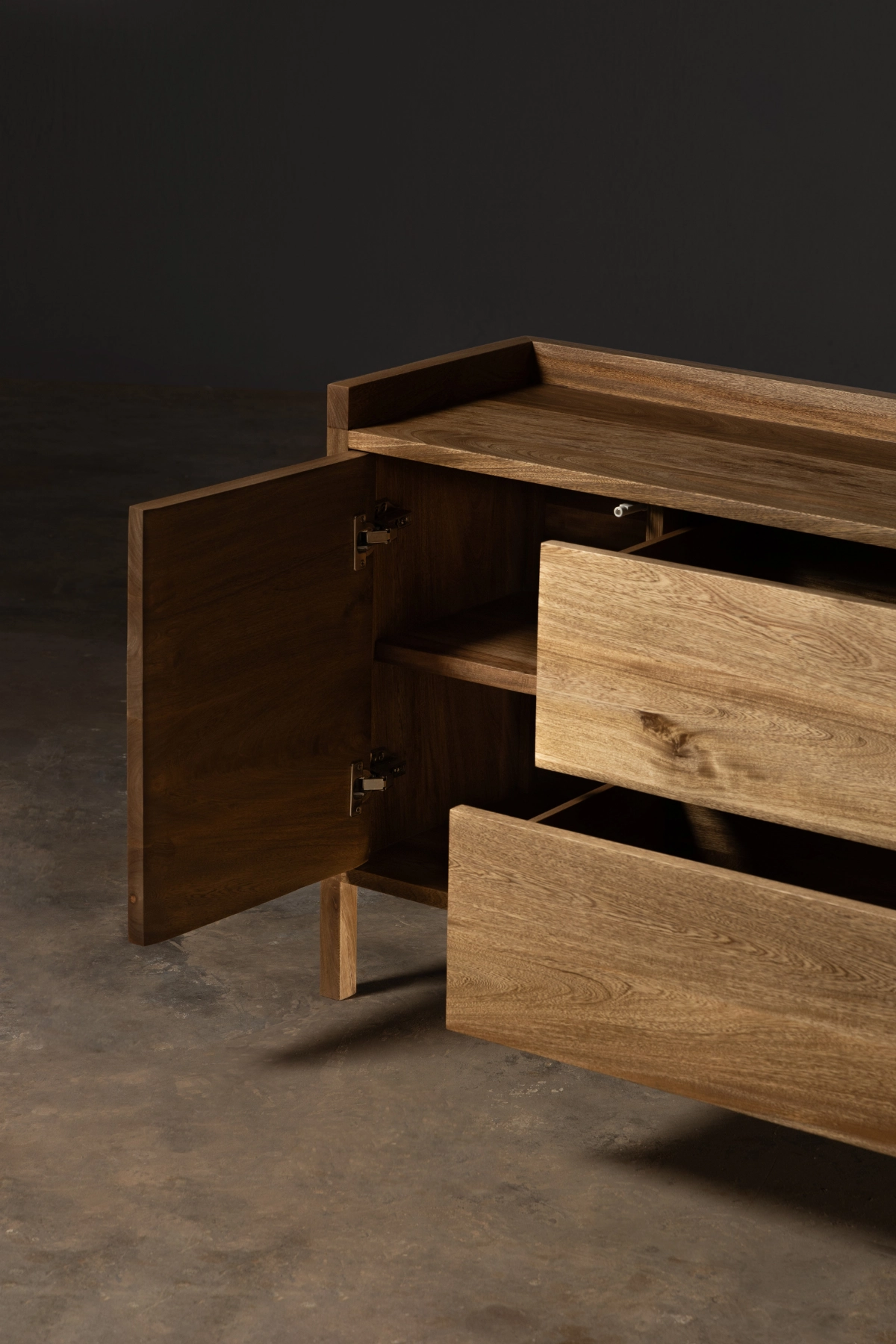 Mezcla arte y funcionalidad. Hecha en madera sólida, es una pieza que aporta almacenamiento y eleva cualquier ambiente.